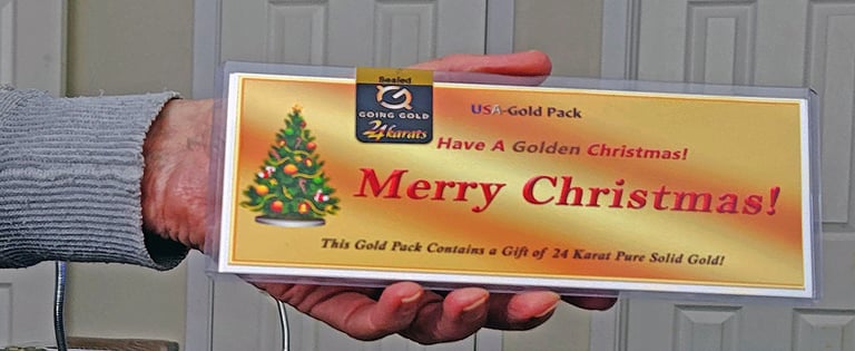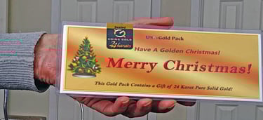 USA—Gold and silver Packs are available for $3.95 each for quantities ranging from 1 to 9. Buy 10 or more Gift Packs and get a 26% (about $2.92 each) discount on your total purchase. Retail can be $4.95 + A Paper Christmas Card starts at $5.95 to $8.89 and does not hold the bullion!